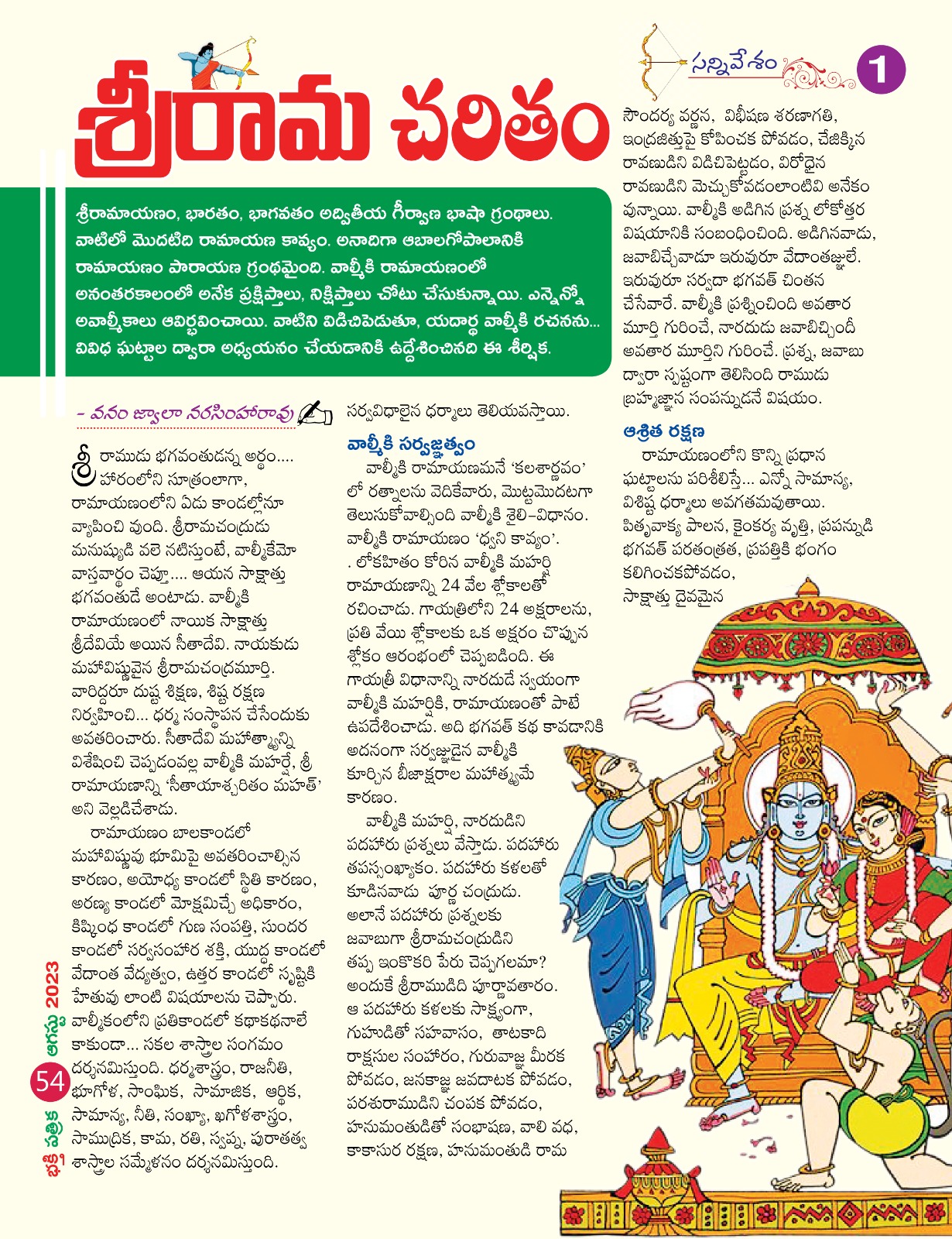 రామాయణ కావ్యం. అనాదిగా ఆబాలగోపాలానికి రామాయణం పారాయణ గ్రంధ మైంది. వాల్మీకి రామాయణంలో అనంతరకాలంలో అనేక ప్రక్షిప్తాలు, నిక్షిప్తాలు చోటు చేసుకున్నాయి. ఎన్నెన్నో అవాల్మీకాలు ఆవిర్భవించాయి. వాటిని విడిచి పెడుతూ, యదార్థ వాల్మీకి రచనను, వివిధ ఘట్టాల ద్వారా అధ్యయనం చేయడానికి ఉద్దేశించినది ఈ శీర్షిక)-ప్రతి నెలా ఒక ఘట్టాన్ని గురించి చదవవచ్చు.